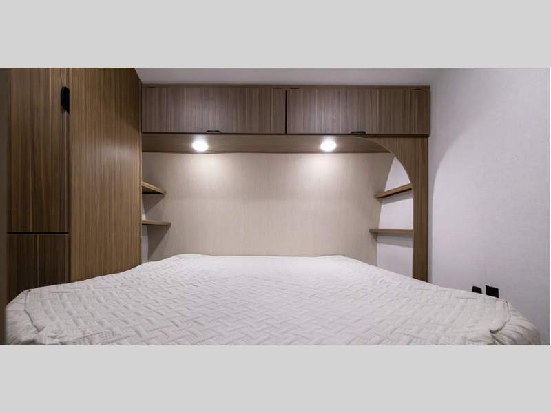 Sleeps 4 Length 32 ft 3 in Ext Width 8 ft Ext Height 11 ft 2 in Hitch Weight 1050 lbs Dry Weight 6198 lbs Cargo Capacity 3652 lbs Fresh Water Capacity 54 gals Grey Water Capacity 40 gals Black Water Capacity 40 gals Furnace BTU 20000 btu Available Beds Custom King Refrigerator Type Extra Large Black Glass 12V Convection Cooking Yes Cooktop Burners 3 Shower Size 30" x 36" Number of Awnings 1 Garage Size 14 ft LP Tank Capacity 20 lbs Water Heater Type On Demand Awning Info 18' Power w/Adjustable Legs and LED Light Strip Axle Count 2 Number of LP Tanks 2 Shower Type Standard Similar Floorplans