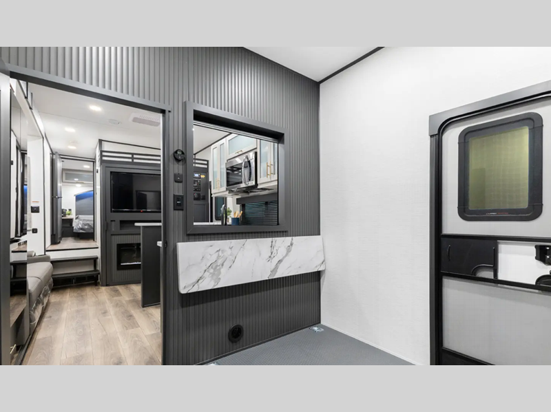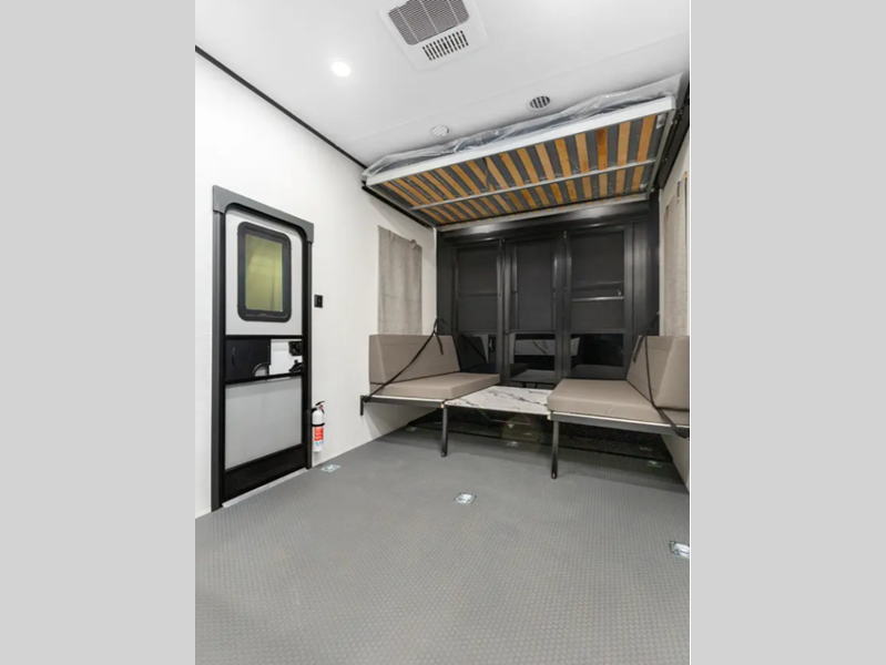 There is fiberglass flooring insulation that will withstand your many adventures plus a rear beaver tail frame for easy unloading and an external fuel cell with a pump. You will feel right at home with decorative glass cabinet doors and LED lights, and there is a tankless water heater to provide endless hot showers after trail riding. The Alumifoil insulated enclosed underbelly will help extend your camping season, and each model is back up camera ready if you want to make parking easier than ever.